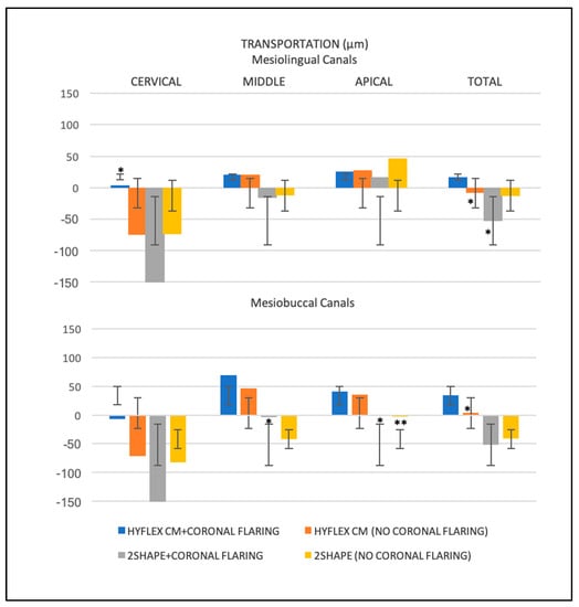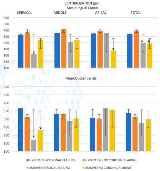 - Barbieri, N.; Leonardi, D.P.; Baechtold, M.S.; Correr, G.M.; Gabardo, M.C.; Zielak, J.C.; Baratto-Filho, F. Influence of cervical preflaring on apical transportation in curved root canals instrumented by reciprocating file systems. BMC Oral Health 2015, 15, 149. [Google Scholar] [CrossRef][Green Version]