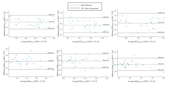 | CBCT | 99.84 ± 0.06 (99.76, 99.92) | 100 (100,100) | 99.77 ± 0.10 (99.64, 99.90) | 99.77 ± 0.19 (99.53, 100) | 0.95 ± 0.34 (0.53, 1.37) | 0.90 ± 0.36 (0.46, 1.35) | 1.00 ± 0.53 (0.34, 1.66) | 0.56 ± 0.30 (0.20, 0.93) | 0.68 ± 0.66 (−0.14, 1.51) | 0.44 ± 0.41 (−0.07, 0.96) |