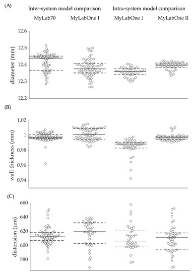 | Diameter (mm) | Bozec et al., 2020 [1] | Carotid artery | Wall tracking system (WTS) and ART.LAB | 188 | 0.119 | 1.8 |