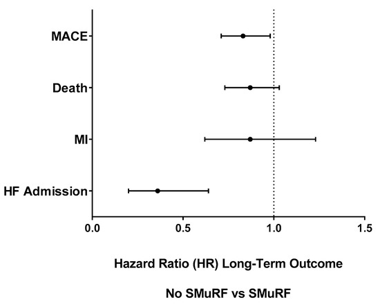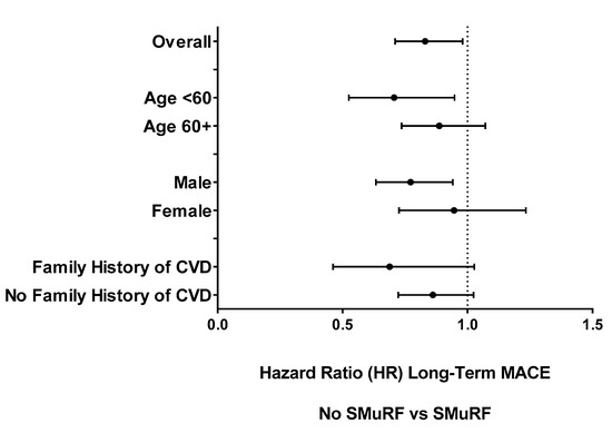Long-term MACE Hazard Ratios (HR) for Subgroups by SMuRF Status.