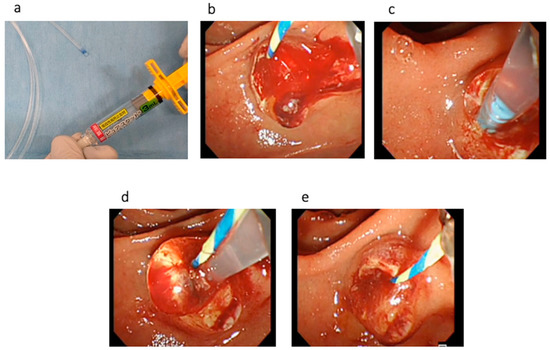 - Katsinelos, P.; Kountouras, J.; Chatzimavroudis, G.; Zavos, C.; Paroutoglou, G.; Pilpilidis, I.; Papaziogas, B. A novel technique of injection treatment for endoscopic sphincterotomy-induced hemorrhage. Endoscopy 2007, 39, 631–636. [Google Scholar] [CrossRef]