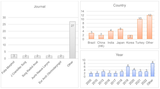 - Karakas, S.; Kavaklıb, A. Morphometric examination of the paranasal sinuses and mastoid air cells using computed tomography. Ann. Saudi Med. 2005, 25, 41–45. [Google Scholar] [CrossRef] [PubMed]
