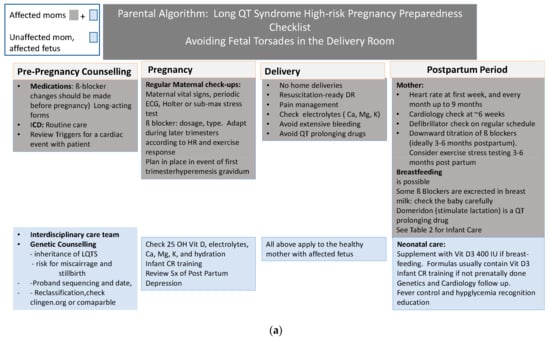- Clinic BIAPBaCOC. Pregnancy & Neonatal Management Guide for Long QT Syndrome (LQTS) TYPES 1 & 2. 2018. Available online: http://www.cardiacbc.ca/Documents/Pregnancy%20and%20Neonatal%20Management%20Guide%20for%20LTQS.pdf (accessed on 5 May 2023).