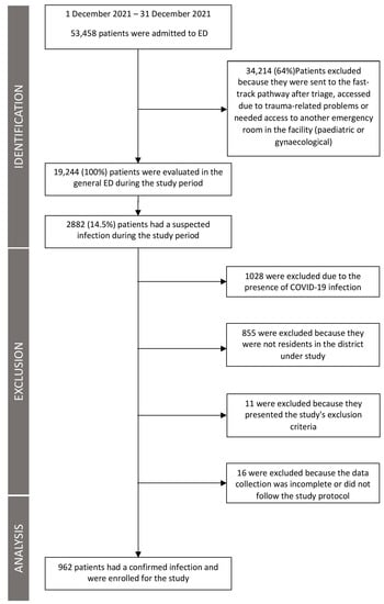 This prospective observational cohort study included patients aged 18 and over with an infection and took place at the ED of the General Hospital of Merano (Italy, 53,000 admissions in 2021) between 1 January 2021 and 31 December 2021. The study was conducted in accordance with the Declaration of Helsinki and approved by the local ethics committee (approval number 94-2020).