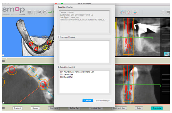 Before surgery, all the patients underwent professional oral hygiene and were carefully instructed on the oral maintenance before and after surgery. A digital impression, clinical photos and cone beam computed tomography (CBCT) were taken on the same day. The CBCT and standard triangulated language (STL) model of the arch selected for surgery were uploaded to software for surgical planning (SWISSMEDA AG OBERMÜHLE 8 6340 BAAR, SWITZERLAND provided by MS Company) and matched together to select the best implant size and length and plan the implant position (Figure 1).
