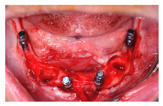 Historically, a full-arch prosthesis supported by two distal tilted implants and two upright anterior implants were implanted free hand with the help of some devices useful in planning the tilting of the implant [15], and standard analogic impression techniques were employed. This allowed us to obtain an optimal implant and prosthesis cumulative survival rate and marginal bone loss in the medium term [2,4,15,16]. The results were confirmed over a 10-year period by Pera et al., who reported an implant cumulative survival rate of 93.25% and a mean bone loss of 2.11 mm [1].