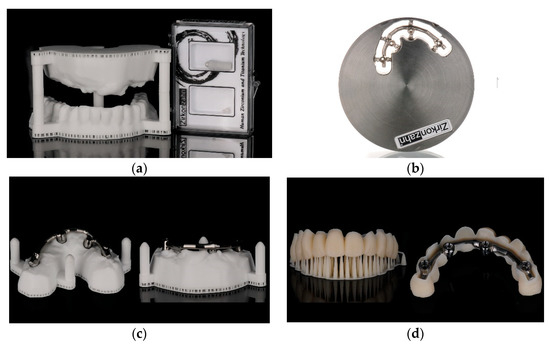 (a–d) A resin model was created for all patients in all groups, and the titanium milled bar was inserted and cemented into the acrylic teeth structure.