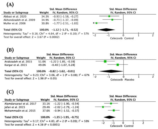 - Wang, Z.; Wu, Q.; Wang, Q. Effect of Celecoxib on Improving Depression: A Systematic Review and Meta-Analysis. World J. Clin. Cases 2022, 10, 7872–7882. [Google Scholar] [CrossRef]