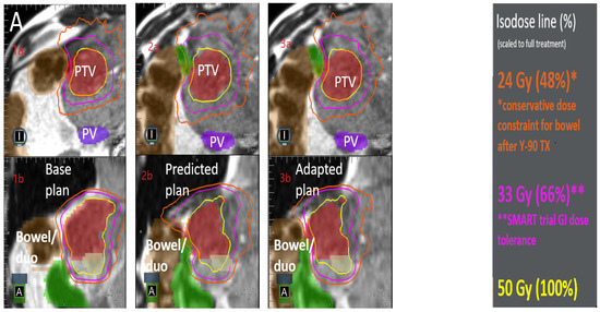 - Michalet, M.; Bordeau, K.; Cantaloube, M.; Valdenaire, S.; Debuire, P.; Simeon, S.; Portales, F.; Draghici, R.; Ychou, M.; Assenat, E.; et al. Stereotactic MR-Guided Radiotherapy for Pancreatic Tumors: Dosimetric Benefit of Adaptation and First Clinical Results in a Prospective Registry Study. Front. Oncol. 2022, 12, 842402. [Google Scholar] [CrossRef] [PubMed]
