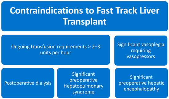 - Biancofiore, G.; Bindi, M.L.; Romanelli, A.M.; Boldrini, A.; Bisà, M.; Esposito, M.; Urbani, L.; Catalano, G.; Mosca, F.; Filipponi, F. Fast track in liver transplantation: 5 years’ experience. Eur. J. Anaesthesiol. 2005, 22, 584–590. [Google Scholar] [CrossRef] [PubMed]