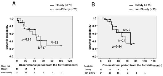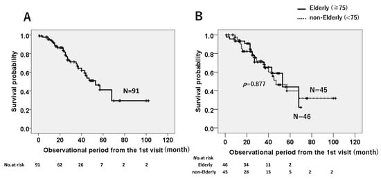 | All Patients (n = 91) | Elderly Group (n = 46) | Non-Elderly Group (n = 45) | p-Value | |