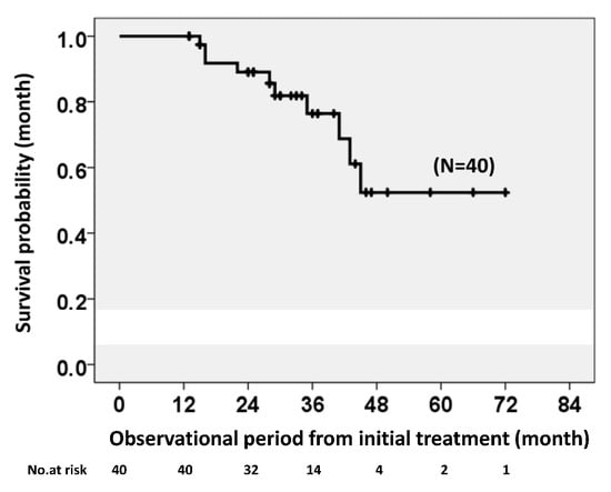 3.1.3. Survival Probabilities of All Enrolled Patients (n = 91) according to the Status of Successful 1-Year Treatment