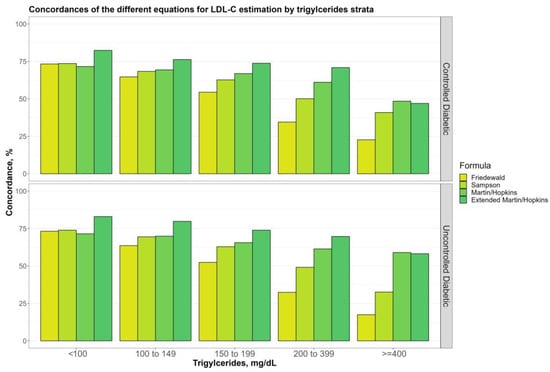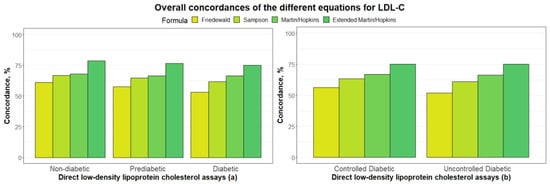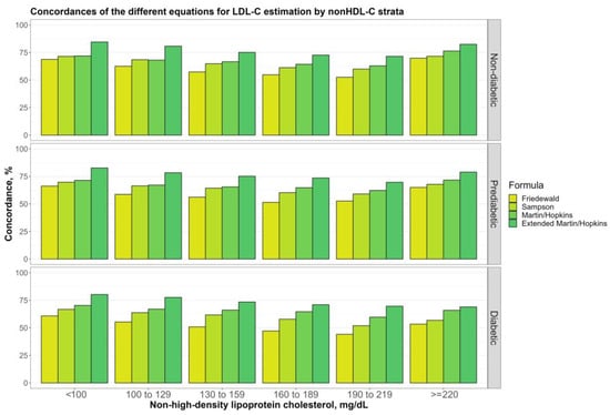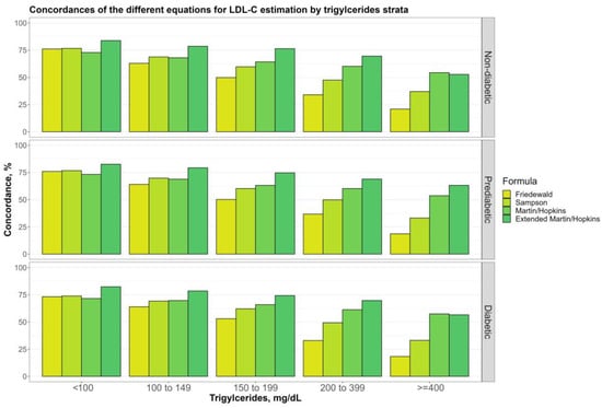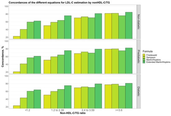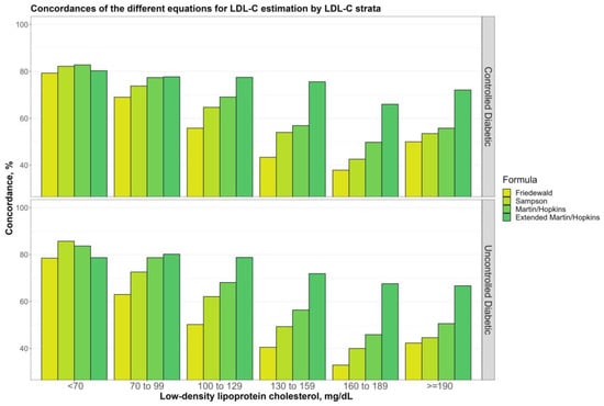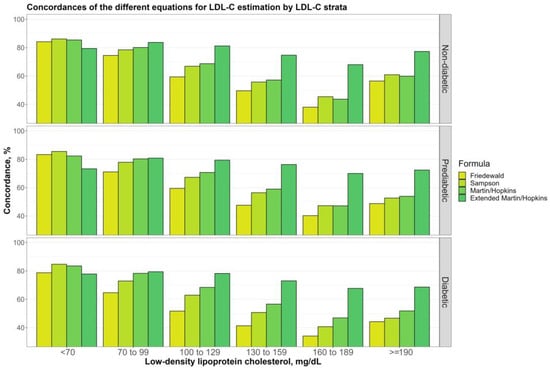 Bolat, S.; Ertürk Zararsız, G.; Doğan, K.; Kochan, N.; Yerlitaş, S.I.; Cephe, A.; Zararsız, G.; Cicero, A.F.G. Concordance of LDL-C Estimating Equations with Direct Enzymatic Measurement in Diabetic and Prediabetic Subjects. J. Clin. Med. 2023, 12, 3570. https://doi.org/10.3390/jcm12103570