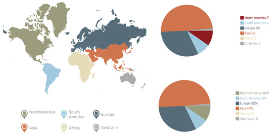 Geographical distribution of the available datasets by continent (where origins of the dataset could be determined).