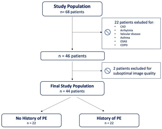 Study design. CAD = coronary artery disease; COPD = chronic obstructive pulmonary disease; OSAS = obstructive sleep apnea syndrome; PE = pulmonary embolism.