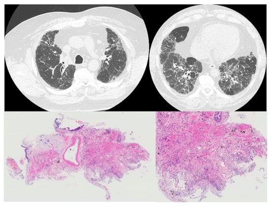- Tomassetti, S.; Wells, A.U.; Costabel, U.; Cavazza, A.; Colby, T.V.; Rossi, G.; Sverzellati, N.; Carloni, A.; Carretta, E.; Buccioli, M.; et al. Bronchoscopic Lung Cryobiopsy Increases Diagnostic Confidence in the Multidisciplinary Diagnosis of Idiopathic Pulmonary Fibrosis. Am. J. Respir. Crit. Care Med. 2016, 193, 745–752. [Google Scholar] [CrossRef] [PubMed]