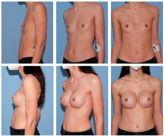 - Codner, M.A.; Mejia, J.D.; Locke, M.B.; Mahoney, A.; Thiels, C.; Nahai, F.R.; Hester, T.R.; Nahai, F. A 15-year experience with primary breast augmentation. Plast. Reconstr. Surg. 2011, 127, 1300–1310. [Google Scholar] [CrossRef] [PubMed]