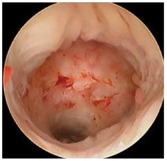 Symptomatology of the niche includes abnormal bleeding, pelvic pain, vaginal discharge, dysmenorrhea and dyspareunia [21,22,23]. The presence of niche could also pose a greater risk for complications during an intrauterine device insertion, endometrial ablation and hysterectomy due to the close scar proximity to the bladder [10]. The niche can easily be visualized by video hysteroscopy as a thin, concave indentation of the myometrium in the lower uterine segment. The defect also could be found at the endocervical canal and mid-uterine body, depending on the site of the hysterotomy incision.