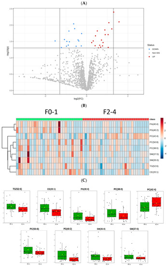 3.2. Lipidomic Profile Differentiation between NASH Stages