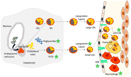 - Cawood, A.L.; Ding, R.; Napper, F.L.; Young, R.H.; Williams, J.A.; Ward, M.J.; Gudmundsen, O.; Vige, R.; Payne, S.P.; Ye, S.; et al. Eicosapentaenoic acid (EPA) from highly concentrated n-3 fatty acid ethyl esters is incorporated into advanced atherosclerotic plaques and higher plaque EPA is associated with decreased plaque inflammation and increased stability. Atherosclerosis 2010, 212, 252–259. [Google Scholar] [CrossRef]