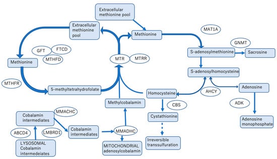 - Huemer, M.; Diodato, D.; Schwahn, B.; Schiff, M.; Bandeira, A.; Benoist, J.F.; Burlina, A.; Cerone, R.; Couce, M.L.; Garcia-Cazorla, A.; et al. Guidelines for diagnosis and management of the cobalamin-related remethylation disorders cblC, cblD, cblE, cblF, cblG, cblJ and MTHFR deficiency. J. Inherit. Metab. Dis. 2017, 40, 21–48. [Google Scholar] [CrossRef]