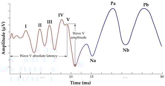 AEPs are classified as early (auditory brainstem responses—ABRs), middle (auditory middle latency responses—AMLRs), or late (auditory late latency responses—ALLRs) based on their occurrence time after the triggering stimulus [29].