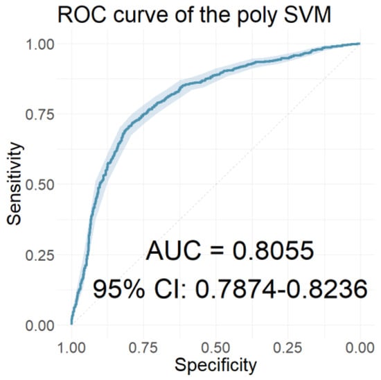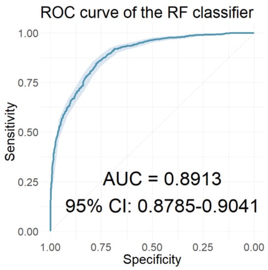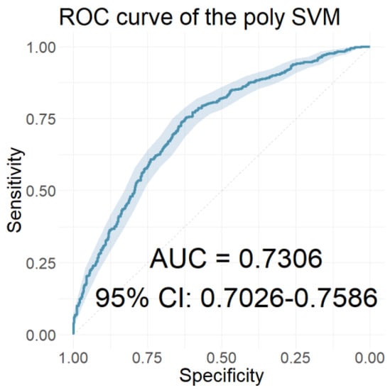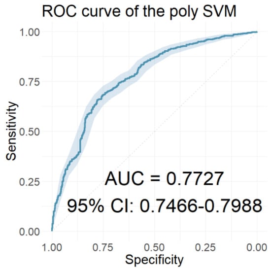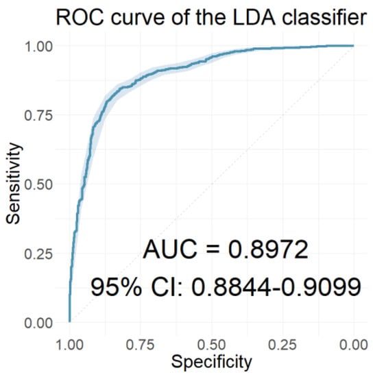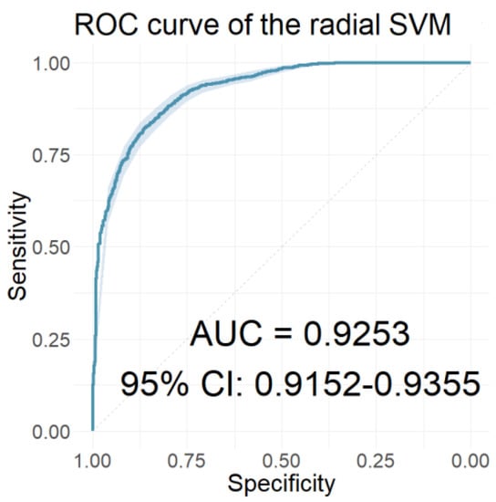 Based on the previous analysis conducted, we used the obtained AEP waveforms metrics as features for machine learning models, both in the time and time–frequency domains. The aim of the classifiers was to distinguish the tinnitus ears between low- and high-tinnitus-related distress groups. Various classifiers, including LDA [91], RF [92], NB [93], polynomial, linear, and radial SVM [94], and NN [95], were developed. The target variable was the THI score category (low or high THI score/tinnitus distress). The R programming language facilitated the training, testing, and validation of these classifiers using the caret package (version 6.0–94). Ten-fold cross-validation was implemented for all the models, reporting mean sensitivity, specificity [96], and AUCROC (Area under the ROC Curve) [97] for performance evaluation.