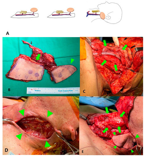 - Kim, W.S.; Park, J.H.; Byeon, H.K.; Chang, J.W.; Ban, M.J.; Koh, Y.W.; Choi, E.C. A Study Comparing Free-Flap Reconstruction via the Retroauricular Approach and the Traditional Transcervical Approach for Head and Neck Cancer: A Matched Case–Control Study. Ann. Surg. Oncol. 2015, 22 (Suppl. 3), 349–354. [Google Scholar] [CrossRef] [PubMed]
