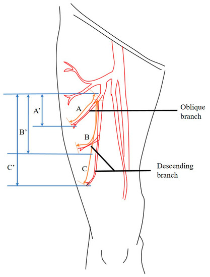 - Choi, S.-W.; Park, J.-Y.; Hur, M.-S.; Park, H.-D.; Kang, H.-J.; Hu, K.-S.; Kim, H.-J. An Anatomic Assessment on Perforators of the Lateral Circumflex Femoral Artery for Anterolateral Thigh Flap. J. Craniofacial Surg. 2007, 18, 866–871. [Google Scholar] [CrossRef]