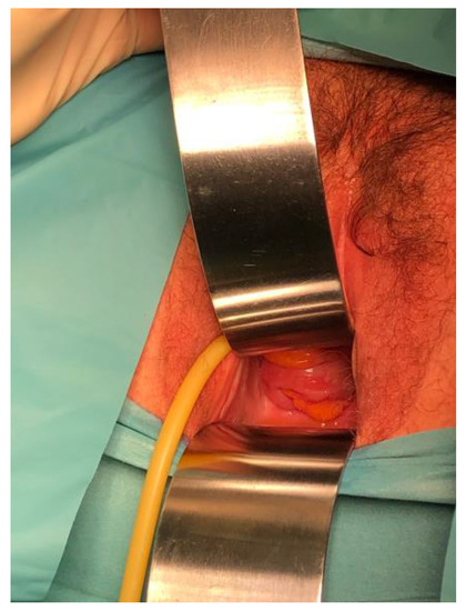 - Hobbs, F.S. Spontaneous evisceration through vagina. Can. Med. Assoc. J. 1952, 66, 68. [Google Scholar] [PubMed]