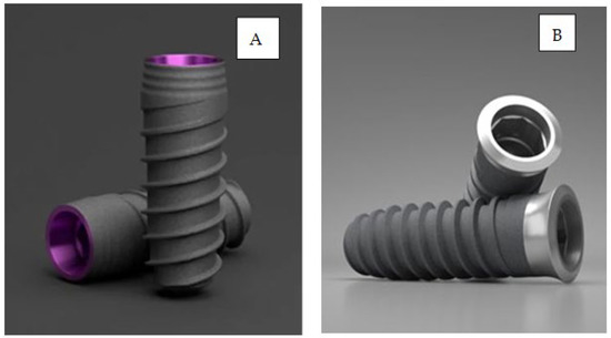 This is the reason why researchers have tried to improve implant properties using methods such as roughening the implant surface using different techniques, such as subtractive and additive methods, including physical (turning and blasting), chemical (acid etching and alkalis), electrochemical (electropolishing and anodizing), deposition (plasma-spraying, sol–gel), and biochemical (proteins) methods [3,4]. Many of these studies have been performed with different dental implant macro-designs, lengths, diameters, thread depths, thread spacing, micro-threads, and other geometrical aspects of dental implants [5,6,7,8,9,10]. Conical or cylindrical implant shapes and the use of platform switching have also been studied, and in all cases, the authors determined the mechanical load transfer to the bone [11,12]. Different studies have reported a positive correlation between roughness and osseointegration, using machined surfaces as controls [13,14,15,16,17]. The roughness produces changes in the wettability, surface energy, zeta potential, and other physico-chemical properties that improve bone growth. [18,19,20,21,22].