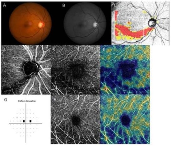 - Yarmohammadi, A.; Zangwill, L.M.; Diniz-Filho, A.; Saunders, L.J.; Suh, M.H.; Wu, Z.; Manalastas, P.I.C.; Akagi, T.; Medeiros, F.A.; Weinreb, R.N. Peripapillary and macular vessel density in patients with glaucoma and single-hemifield visual field defect. Ophthalmology 2017, 124, 709–719. [Google Scholar] [CrossRef]