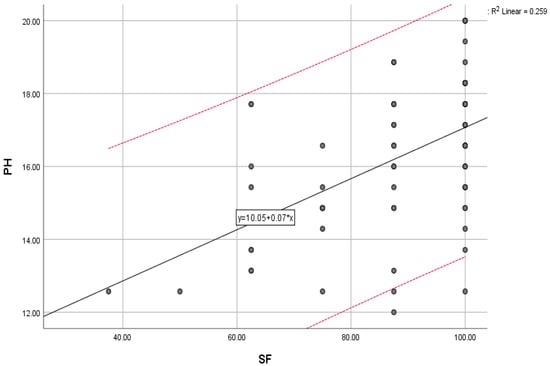 Physical health scores (PH) compared with the general trend for social functioning (SF) scores; “y” indicates the overall trend of the scores.