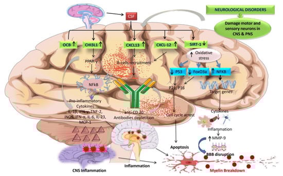 MS requires lesions in at least two sections of the central nervous system, including the spinal cord, brain, and optic nerves, as well as evidence that the insult occurred at two different times, as confirmed by clinical history or MRI [9,107]. Developing reliable biomarkers for MS remains challenging, but progress has been made in identifying potential markers. Continued research is needed to validate and refine these biomarkers and identify new markers that could improve this complex disease’s diagnosis, monitoring, and treatment.