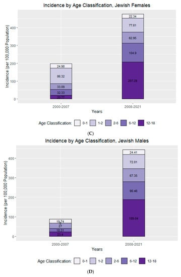 A decrease was observed only in Jewish girls aged 0–2 years old (11% decrease in 0–1, 10% decrease in 1–2). However, in other age ranges within this group, there was an increase in the number of cases, albeit a significantly moderate increase compared to other groups, as shown in Table 1.