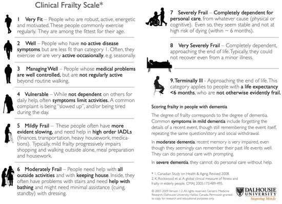 Clinical Frailty Scale (Dalhousie University, Halifax, NS, Canada), used with permission [69,70].