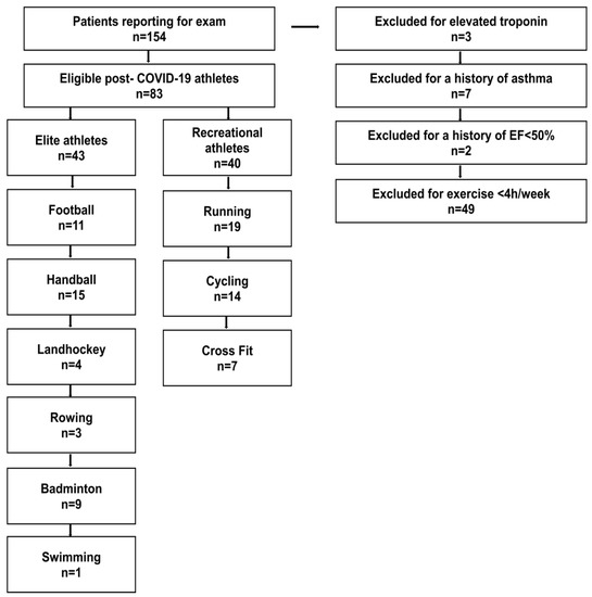 - Wilson, M.G.; Hull, J.H.; Rogers, J.; Pollock, N.; Dodd, M.; Haines, J.; Harris, S.; Loosemore, M.; Malhotra, A.; Pieles, G.; et al. Cardiorespiratory considerations for return-to-play in elite athletes after COVID-19 infection: A practical guide for sport and exercise medicine physicians. Br. J. Sport. Med. 2020, 54, 1157–1161. [Google Scholar] [CrossRef]