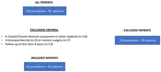 - Innocenti, M.; Carulli, C.; Matassi, F.; Carossino, A.M.; Brandi, M.L.; Civinini, R. Total knee arthroplasty in patients with hypersensitivity to metals. Int. Orthop. 2014, 38, 329–333. [Google Scholar] [CrossRef]