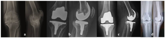 - Ewald, F.C. The Knee Society total knee arthroplasty roentgenographic evaluation and scoring system. Clin. Orthop. 1998, 351, 270–274. [Google Scholar] [CrossRef]
