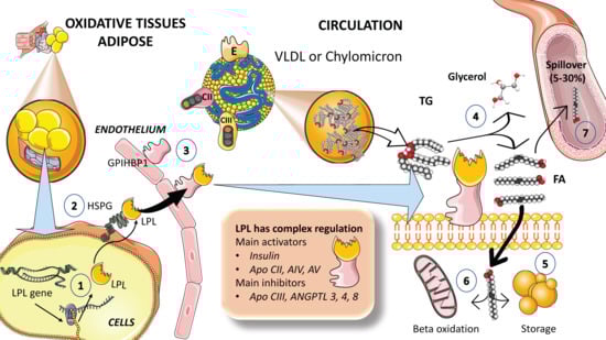 3. The Second Phase of the Fluxes of TRLs: Enabling the Uptake of Fatty Acids by Tissues—The Role of Lipoprotein Lipase