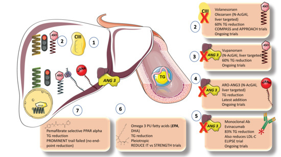 - D’Erasmo, L.; Gallo, A.; Di Costanzo, A.; Bruckert, E.; Arca, M. Evaluation of Efficacy and Safety of Antisense Inhibition of Apolipoprotein C-III with Volanesorsen in Patients with Severe Hypertriglyceridemia. Expert Opin. Pharmacother. 2020, 21, 1675–1684. [Google Scholar] [CrossRef]