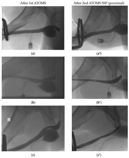 - Virseda-Chamorro, M.; Ruiz, S.; García, G.; Queissert, F.; Salinas, J.; Arance, I.; Angulo, J.C. Do voiding urodynamic parameters predict the success of adjustable transobturator male system (ATOMS) to treat postprostatectomy urinary incontinence? Neurourol. Urodyn. 2020, 39, 1746–1752. [Google Scholar] [CrossRef] [PubMed]