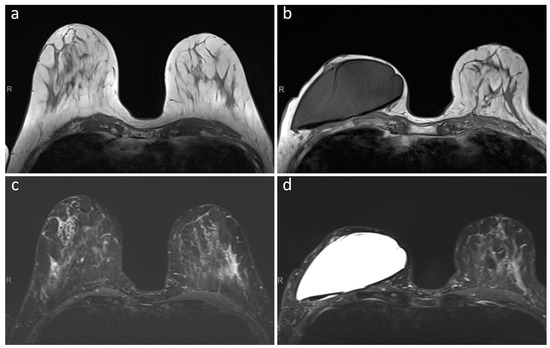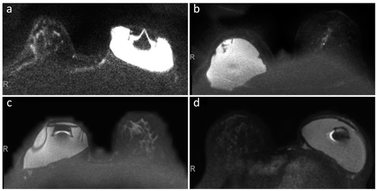 - Fausto, A.; Bernini, M.; Giacomo, L.D.; Schivartche, V.; Marcasciano, M.; Casella, D.; Volterrani, L.; Mazzei, M.A. Diagnostic value and safety of dynamic MRI of contralateral breast and axilla in subjects with tissue expander. J. Plast. Reconstr. Aesthetic Surg. 2018, 71, 1282–1285. [Google Scholar] [CrossRef]