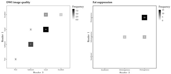 - Quality of fat suppression, on a three-level ordinal scale (“Insufficient”, “Inhomogeneous”, and “Homogeneous”);