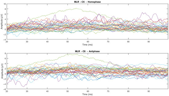 Channel-wise 500 Hz MLR ERP wave for all subjects at C6 electrode (Each line represents each subject).