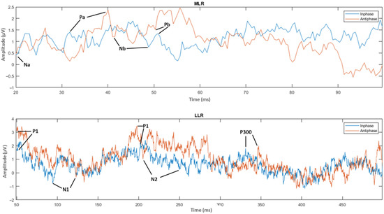 The ABR, MLR, and LLR are the major AEP components, each reflecting different parts of the auditory pathway’s electrical activity. AEPs have the potential to provide important information for the management and treatment of hearing disorders, as well as to advance our understanding of the neural mechanisms underlying auditory perception and cognition [34,35,36]. Further research is needed to fully understand the neural mechanisms underlying AEPs and their clinical and scientific implications.