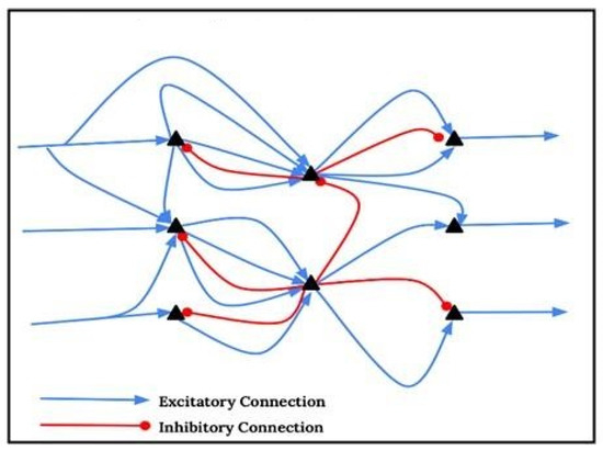 The neural assemblies of the brain can be described through both excitatory and inhibitory connections. A fair question to ask is whether there is a “neural correlate” for mental representation. In fact, the neural correlate of a mental representation can be characterized by the fact that the connectivity or coupling among those neurons form an assembly confined with respect to its environment, to which connectivity is weaker than within the assembly [8]. Thus, the neural correlation of a mental representation is activated if the neurons which form the assembly itself operate more actively by, e.g., producing higher firing rates than when in their normal mode. To maintain a stable operation of an activated neuronal assembly, there must be an equilibrium between the inhibitory and the excitatory connections amongst the neurons (see Figure 1). If the transfer function of individual neurons is strictly monotonic (which means increasing input leads to increasing output), assemblies will be difficult to stabilize, and equilibrium cannot be maintained. Therefore, the goal is to have results establishing a non-monotonic transfer function with a maximal output at intermediate input; this is of high significance for the modeling of neuronal assemblies [9]. Yet, mathematically, network models using lattices of coupled maps with a quadratic maximum are paradigmatic examples of this exact behavior, which is extremely beneficial [10]. Thus, incorporating these different network models, which are very similar to ideas described in quantum theory, where conscious decision making comes from collapsing wave functions and reaching one final irreversible state, can have great benefit in explaining certain biological phenomena, bringing an intersectionality between the two fields of quantum mechanics and medicine.