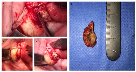 - Di Fede, O.; Canepa, F.; Panzarella, V.; Mauceri, R.; Del Gaizo, C.; Bedogni, A.; Fusco, V.; Tozzo, P.; Pizzo, G.; Campisi, G.; et al. The Treatment of Medication-Related Osteonecrosis of the Jaw (MRONJ): A Systematic Review with a Pooled Analysis of Only Surgery versus Combined Protocols. Int. J. Environ. Res. Public Health 2021, 18, 8432. [Google Scholar] [CrossRef] [PubMed]