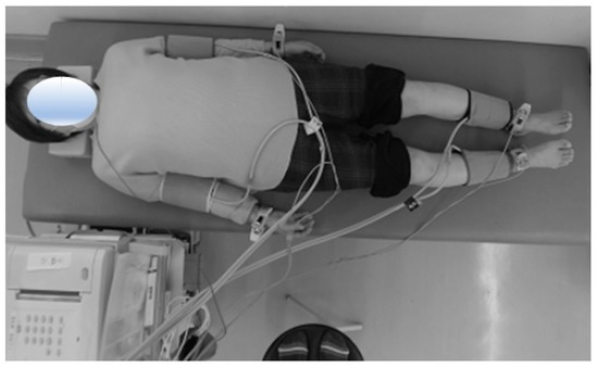 Measurement of the cardio-ankle vascular index (CAVI). First, the distance from the origin of the aorta to the ankle was measured with the patient lying in the supine position on a bed at rest. Next, cuffs used to measure blood pressure were wrapped around the right and left upper arms as well as the right and left ankle joints, and a microphone that detects heart sounds was attached to the chest. At the flip of a switch, the instrument automatically measured the pulse wave and blood pressure and calculated the CAVI. The entire measurement took about 15 min, and the test was painless.