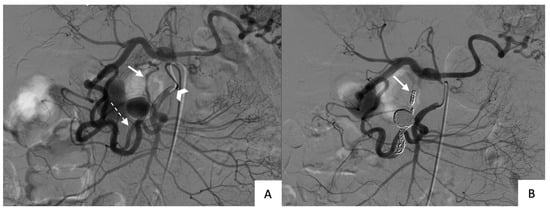 APA StyleSiauve, V., Chevallier, O., Mazit, A., Falvo, N., Comby, P.-O., & Loffroy, R. (2023). Interventional Radiology for High-Flow Aneurysm of the Pancreaticoduodenal Arcades with Median Arcuate Ligament Syndrome: Review of 14 Patients. Journal of Clinical Medicine, 12(14), 4692. https://doi.org/10.3390/jcm12144692